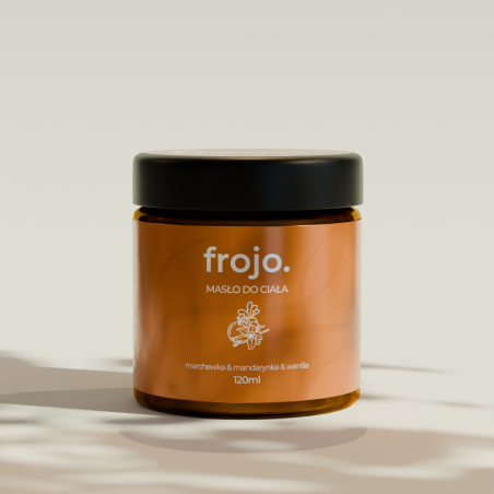 Naturalne masło do ciała Marchew Mandarynka Wanilia intensywnie odżywia, regeneruje i poprawia koloryt skóry. Zawiera olej z marchwi, olejek mandarynkowy i ekstrakt z wanilii, które wspierają odbudowę naskórka, wygładzają i nadają skórze promienny wygląd. Bogata formuła na bazie maseł i olejów roślinnych chroni przed przesuszeniem i zapewnia długotrwałe nawilżenie.
