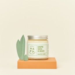 Skład: wosk sojowy, olej konopny, olejek eteryczny eukaliptusowy, olejek eteryczny
